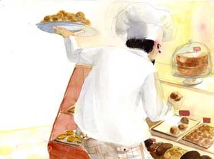 Filling up muffin tins. Soon FIVE loaves are baking,